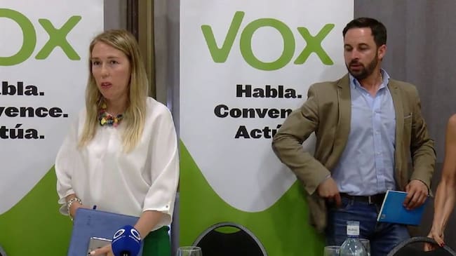 Salud Anguita bajo la atenta mirada del líder nacional Santiago Abascal / youtube