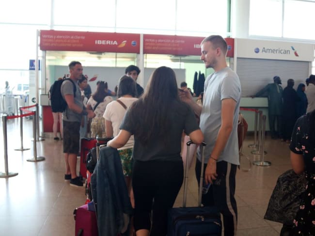 Plano general de varios pasajeros en el punto de reclamaciones de Ibreria en el aeropuerto de El Prat. / Pol Solà (ACN)