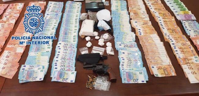 En la primera de ellas, se han intervenido cerca de 600 gramos de cocaína, marihuana, más de 17.000 euros en efectivo y un revólver con 40 cartuchos