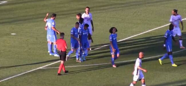 Los azulones saltaron al césped del Coliséum con un once inicial conformado por David Soria, Djene, Bergara, Bruno, Ángel, Cucurella, Raúl Carnero, Molina, Damián, Poulolo y Merveil. Fue uno de los mejores partidos de la pretemporada azulona, cerrado finalmente con el gol de penalti de Jorge Molina en el minuto 22.