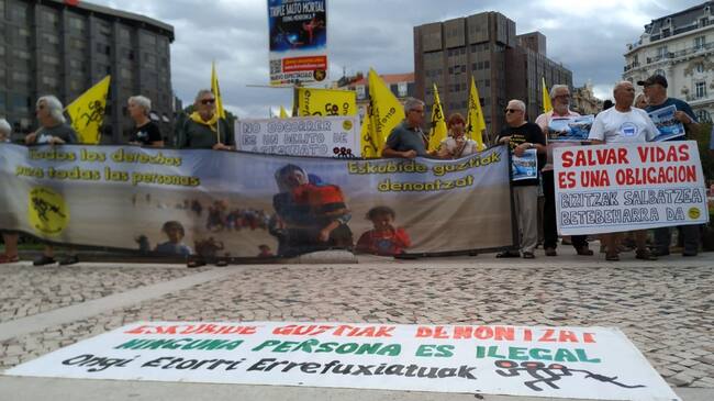 Esta concentración ha contado con la asistencia de medio centenar de personas frente a la delegación del Gobierno español en Bizkaia que portaban varias pancartas y banderas. El grupo ha denunciado la postura de la Unión Europea y toda la burocracia necesaria entre sus estados para acoger a estas personas.