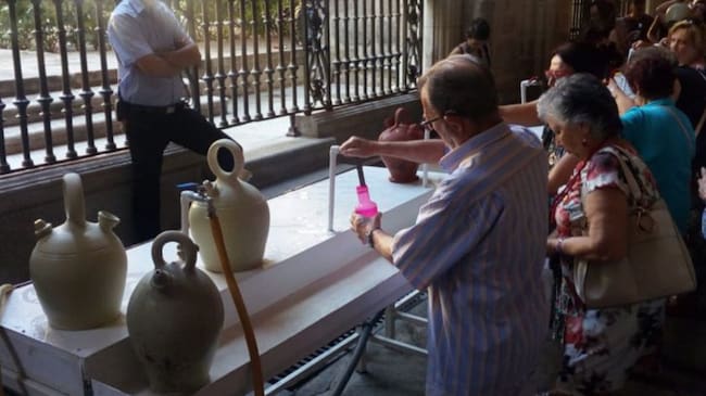 Al llegar la víspera del 15 de agosto en Toledo se repite una tradición que coincide con el inicio de las ferias y fiestas en honor a la Virgen del Sagrario. El habitual que los toledanos y visitantes que se quieran sumar a la cita hagan el acto simbólico de beber agua de un botijo.