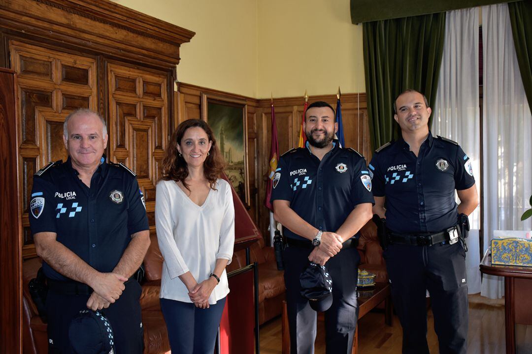 La teniente de alcalde y concejala de Seguridad y Movilidad, Flora Bellón, ha presidido la toma de posesión de dos agentes de Policía Local, José María Molina y Pedro Luis Carvajal, quienes han accedido a su puesto por el Sistema de Movilidad.