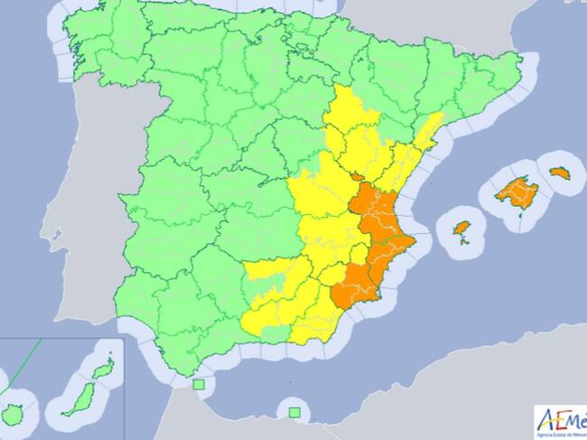 Las peores horas serán desde las 21:00h de la noche de hoy hasta las 21:00h también de la noche de mañana. Así serán 24 horas de gota fría en que la probabilidad de lluvia se espera del 100% según la previsión de Aemet. Las temperaturas también se verán afectadas por este fenómeno meteorológico. Hoy las máximas serán de 29º y mañana mucho más frescas, apenas 26º.