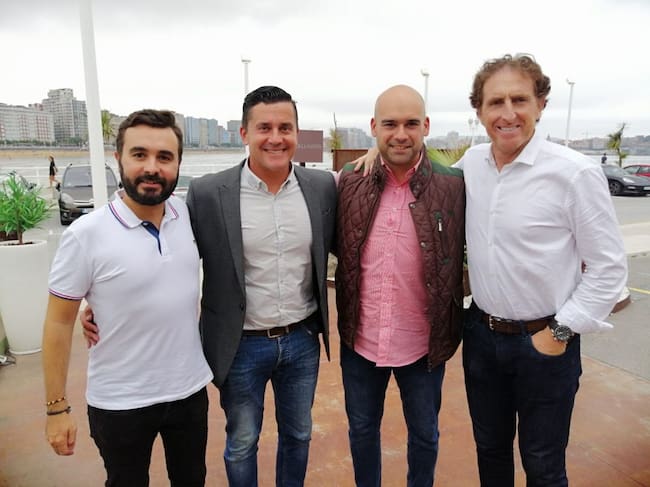 El presidente de la Federación de Peñas Sportinguistas Jorge Guerrero, el concejal de Foro Jesús Martínez Salvador y el exfutbolista y exdirectivo del Sporting Iñaki Eraña acompañaron a David González en la Tertulia Cyasa. / SER GIJÓN