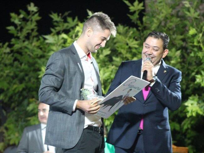 Guillermo Carrasco y Luis Miguel Muñumer, pregonero y alcalde de Fresno el Viejo, en el inicio de sus fiestas / Cadena SER