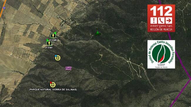 Efectivos adscritos al Plan Infomur, de lucha contra los incendios forestales en la Región de Murcia, apagaron un conato de incendio, provocado por la caída de un rayo, en la umbría de la Sierra de las Salinas, en el término municipal de Yecla.