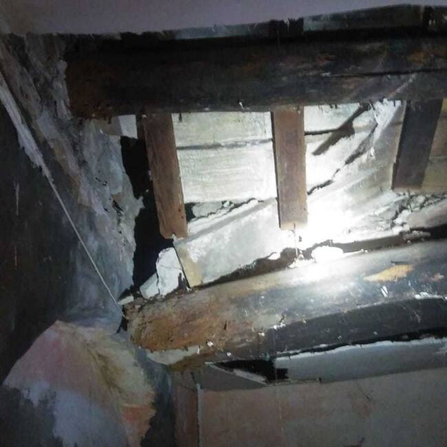 A su llegada, los bomberos descubrieron una sección de deterioro de cuatro vigas de madera que afectaba al techo de la vivienda de la planta baja y al suelo de la vivienda del primer piso.