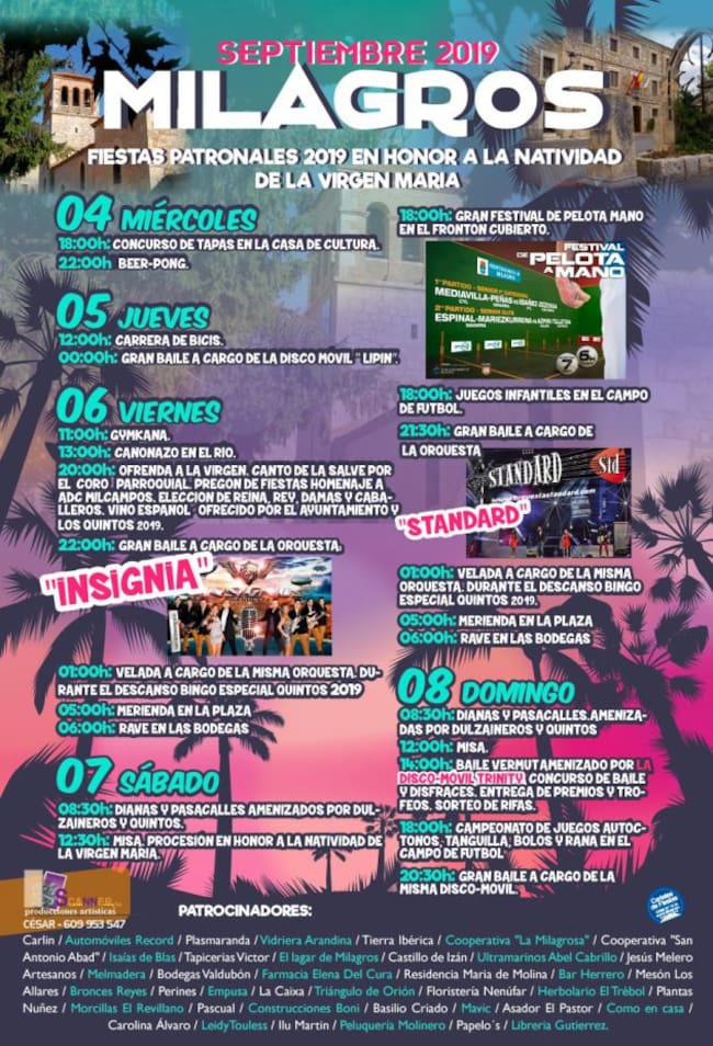 A lo largo de los próximos días Milagros celebrará sus fiestas patronales en honor a la Natividad de la Virgen. Aunque los actos centrales se concentrarán durante el fin de semana, a partir de este miércoles el municipio contará con diferentes actividades como un concurso de tapas o una carrera de bicis el jueves.