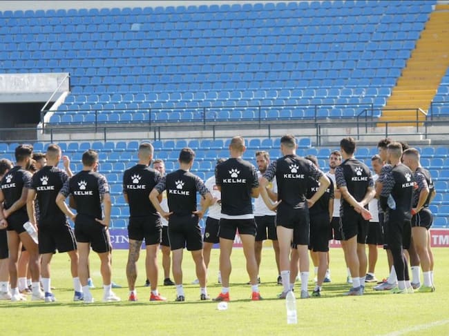 Los jugadores del Hércules escuchan a su entrenador / Hércules CF