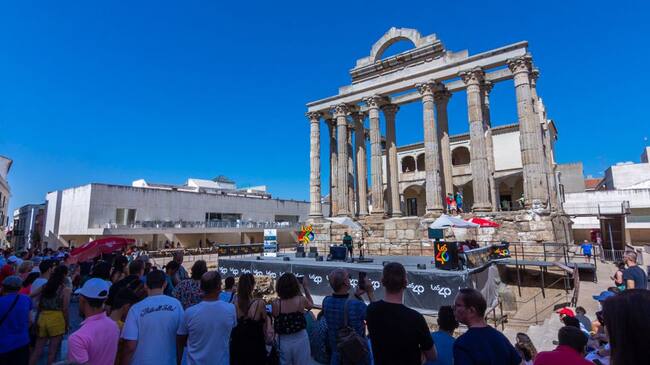 El Templo de Diana de Mérida fue el escenario perfecto para que el dj y director de "Del 40 al 1", Tony Aguilar, hiciera las delicias de todos aquellos que se acercaron a conocer cuál era el número 1 de la lista de éxitos más importante. Un programa en el que conocimos que la pareja de moda Shawn Mendes y Camila Cabello volvían a colocar su "Señorita" en lo más alto de la lista.