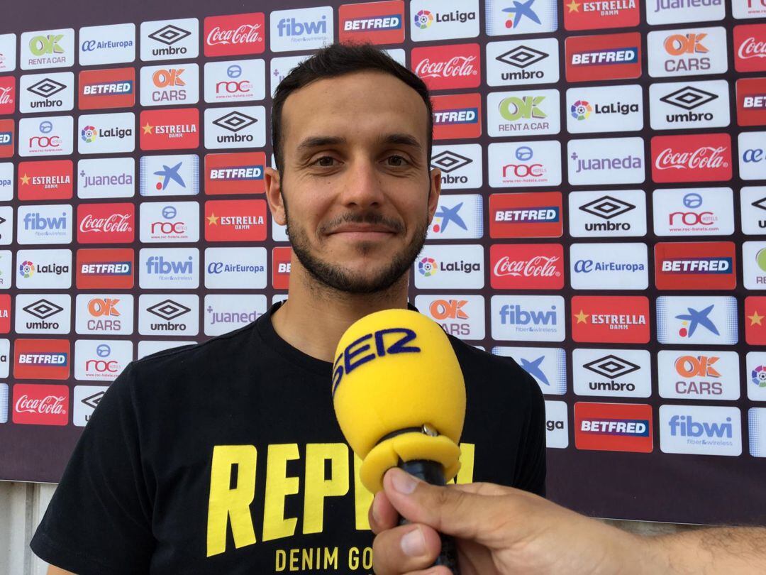 Joan Sastre, el lateral del Real Mallorca se ha parado entre los medios de comunicación y la publicidad del club para charlar sobre esta semana de parón, reflexión y de preparación distendida de cara al partido contra el Athletic Club este próximo viernes a las 21:00 en Son Moix.