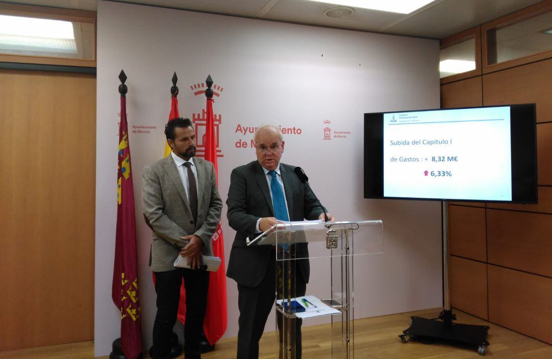 El concejal de Hacienda, Eduardo Martínez-Oliva, junto con el primer teniente de alcalde, Mario Gómez, ha presentado este martes el proyecto para las cuentas públicas que, tras su aprobación inicial en junta de gobierno extraordinaria, se ha remitido ya a los grupos municipales para que puedan hacer sus aportaciones.