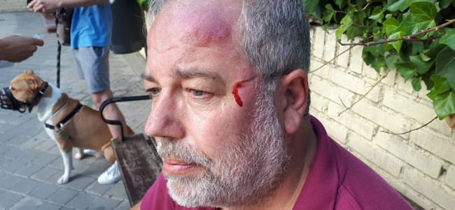 Un golpe en la cabeza, la patilla de las gafas clavada en la cara, y numerosos moratones en la espalda, son el resultado de la agresión. Marcelo Cornellá, presidente de una asociación de mayores de Fuenlabrada, pidió a dos jóvenes, un chico y una chica, que no retiraran la seguridad de unas vallas de obra, colocadas para prevenir que alguien se callera en una zanja de un metro y medio, pero nunca pensó que esto acabaría en una agresión. Uno de los jóvenes le golpeó en la cabeza y le tiro al suelo propinandole patadas cuando vio que llamaba a la Policía.
