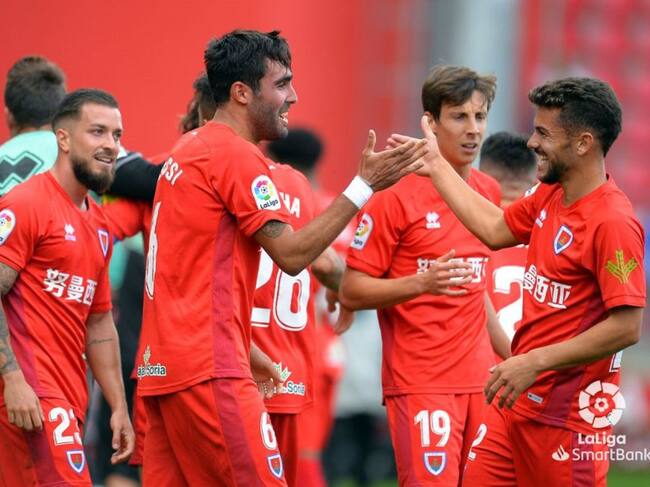 Alberto Escassi celebra su gol junto sus compañeros. / laliga.es