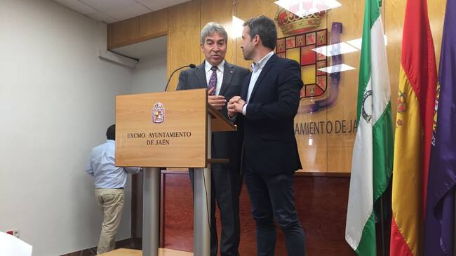 Lucrecio Fernández y Julio Millán charlan minutos antes de su comparecencia ante los medios / Radio Jaén