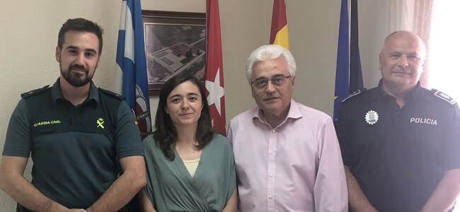 Representantes de Guardia Civil y Policía Local, que estarán en la comisión contra las ocupaciones ilegales, junto a la alcaldesa y el concejal de Seguridad / Ayuntamiento de Ciempozuelos