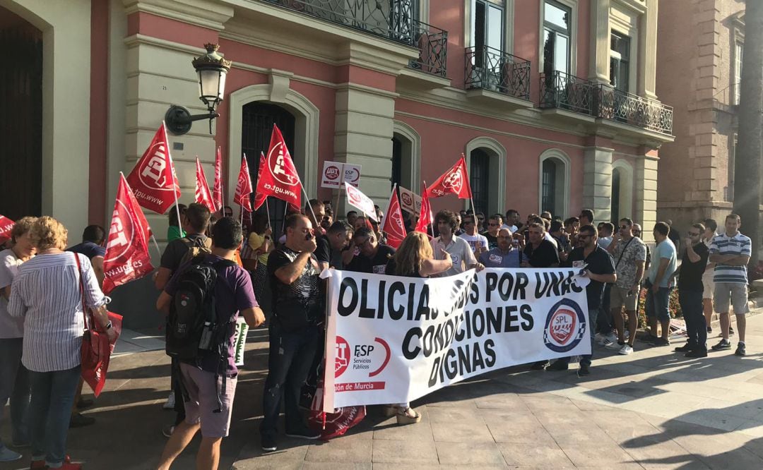 Un centenar de policías protesta ante el Ayuntamiento de Murcia para reclamar más medios