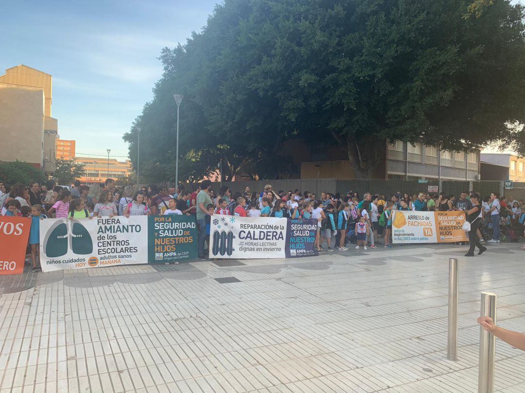 Tercera concentración la que han llevado a cabo este jueves 3 de octubre los padres de alumnos del colegio público Virgen del Carmen de Cartagena.