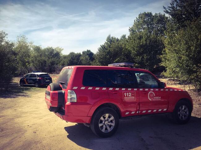 Vehículo del servicio de emergencias 112 en los aledaños del lugar donde se ha encontrado el cuerpo. / 112