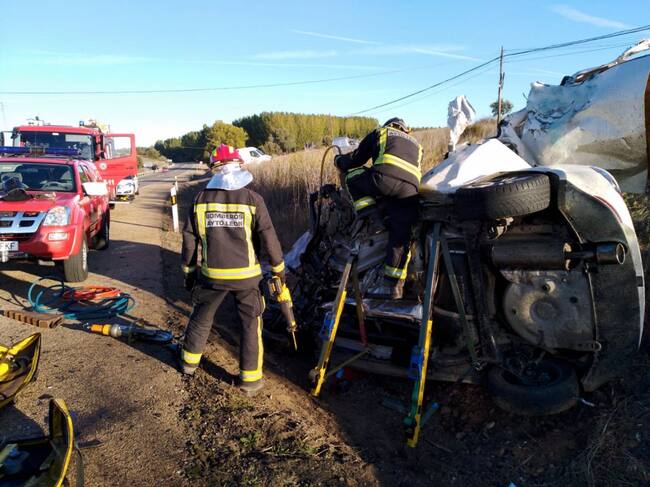 El vehñiculo que conducía el joven impactó frontalmente contra un camión / Bomberos de León