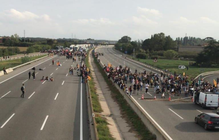 La autopista AP-7 cortada a la altura de la salida 7 (Girona sud-Sant Feliu de Guíxols)