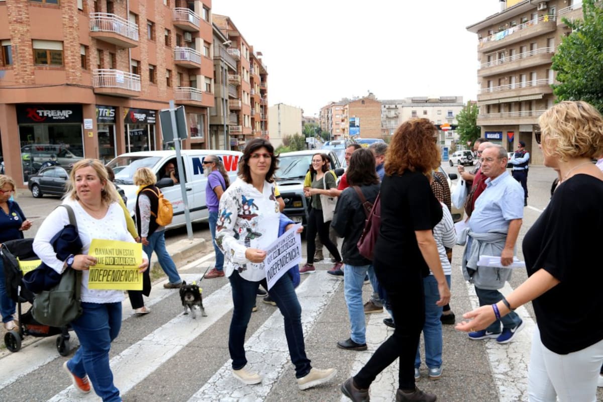 Decenas de personas recorren lentamente un paso de peatones en Tremp (Lleida) para protestar por la sentencia