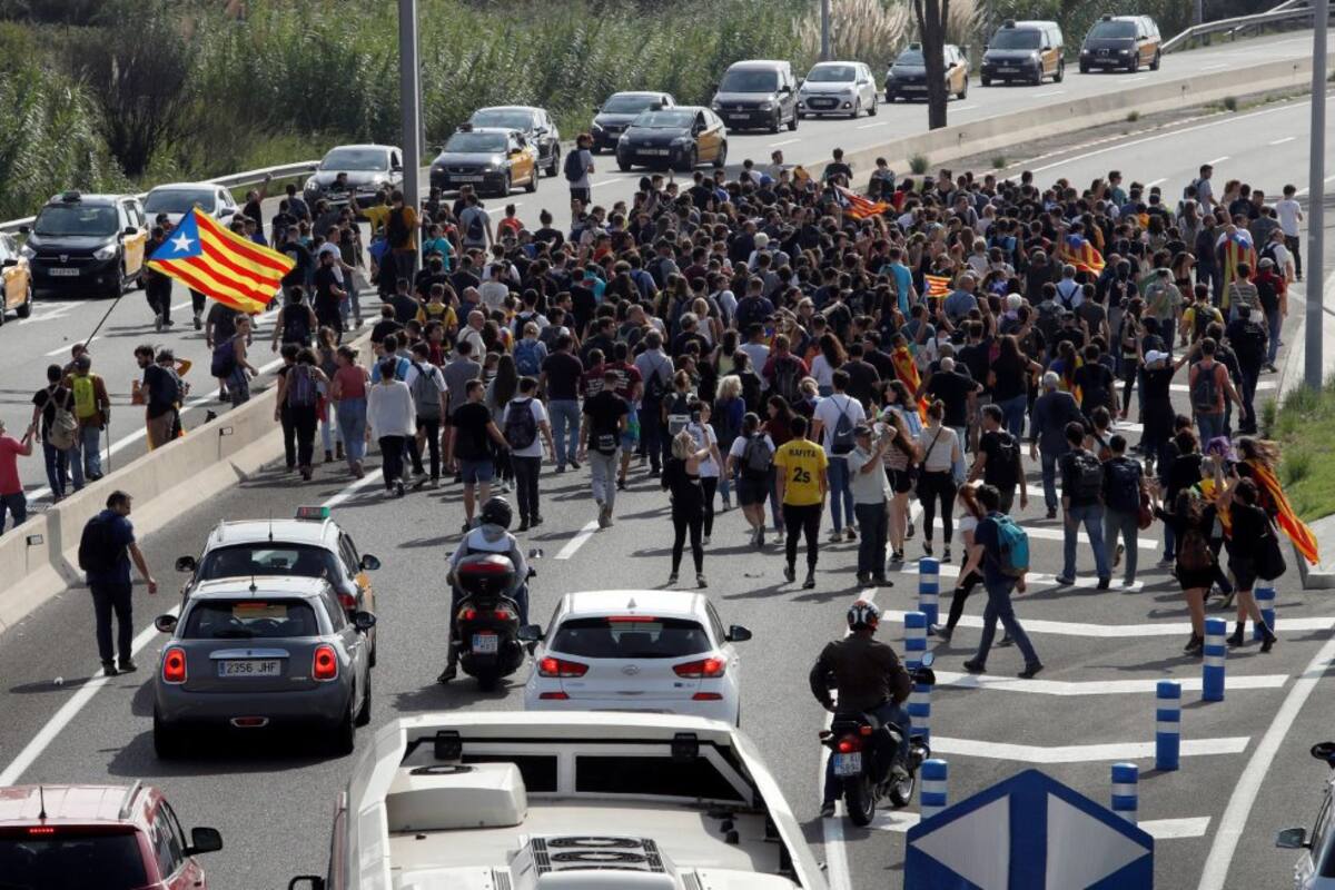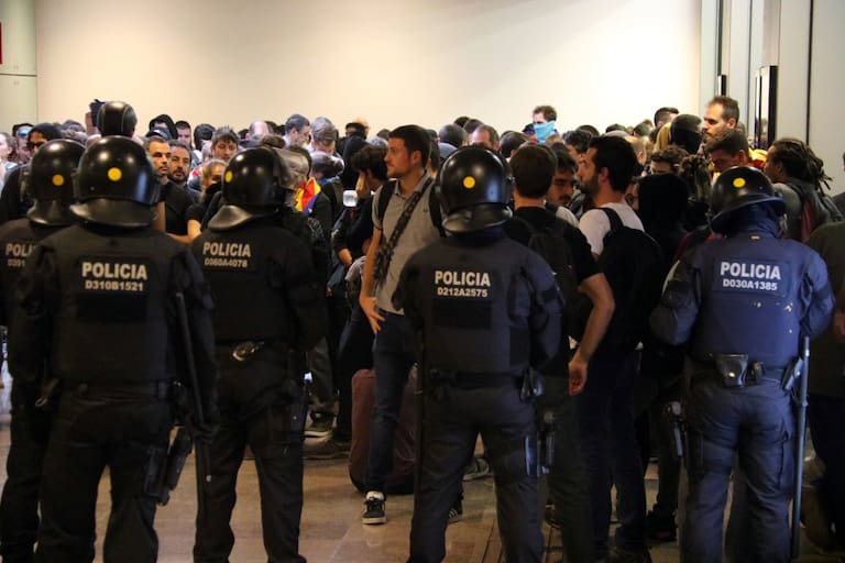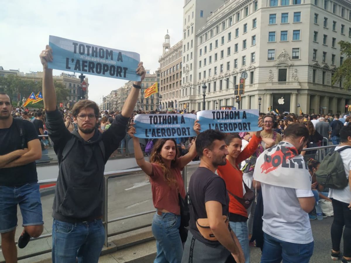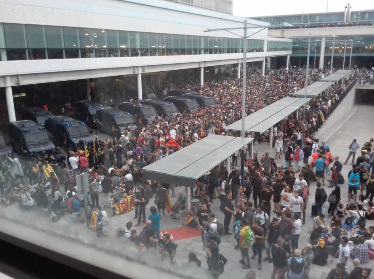 Los Mossos retienen a un grupo de manifestantes del Tsunami Democrático en el aeropuerto del Prat
