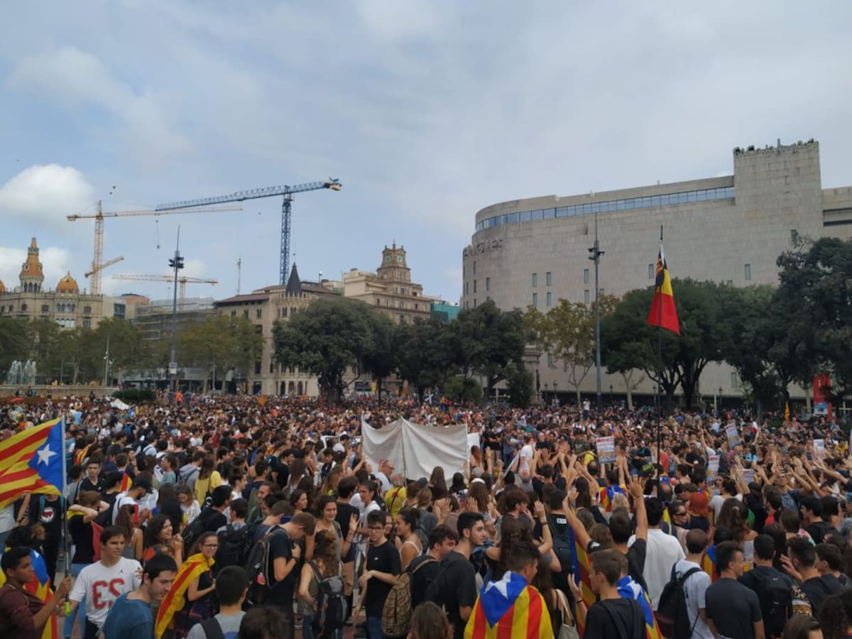 Manifestantes en la plaza Cataluña de Barcelona