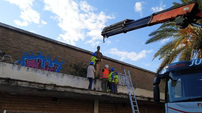 Comienzan los trabajos de retirada de las estatuas del Pabellón de la Juventud, como paso previo a la demolición / Cadena SER