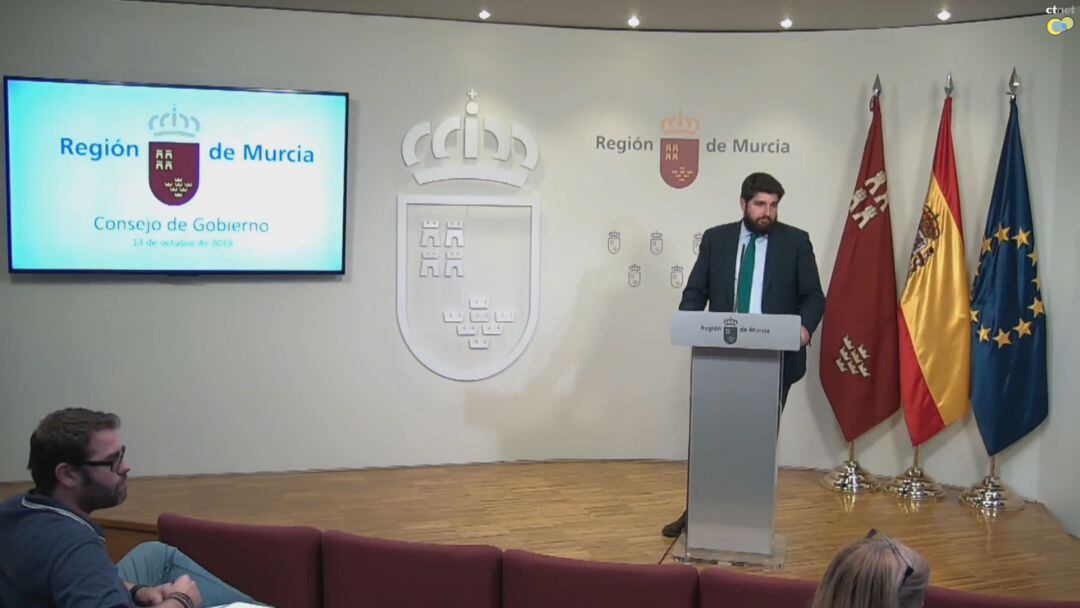 El Presidente Fernando López Miras ha comparecido a las nueve y media de la noche ante los medios para informar sobre los asuntos tratados en una larga e intensa reunión urgente del consejo de gobierno celebrada en el Palacio de San Esteban