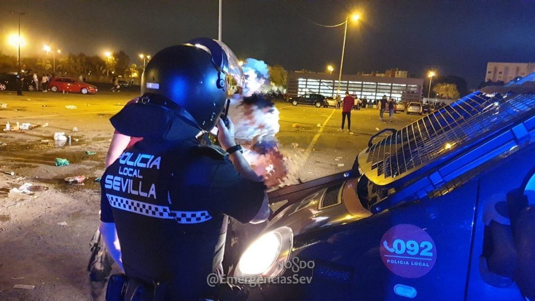 En cuanto a la detención, esta se produjo en la Alameda de Hércules, cuando un joven agredió a un agente por intentar evitar una fogata en este lugar sobre las 5 de la madrugada. El agente fue atendido de magulladuras en una rodilla. Así, agentes de la Policía Local de Sevilla han detenido a un varón de 34 años de edad, como presunto autor de incendiar cartones en la Alameda y agredir a los agentes que intentaron evitarlo.Un operario de Lipasam les requirió porque en la zona media del bulevar, un grupo de jóvenes estaban haciendo una fogata. Los agentes pudieron comprobar como tres jóvenes, dos hombres y una mujer, prendían fuego a unos cartones y al dirigirse los agentes al lugar, uno de los jóvenes les lanzó un palo de grandes dimensiones, que consiguieron esquivar, emprendiendo la huida a la carrera, siendo seguido por los agentes.