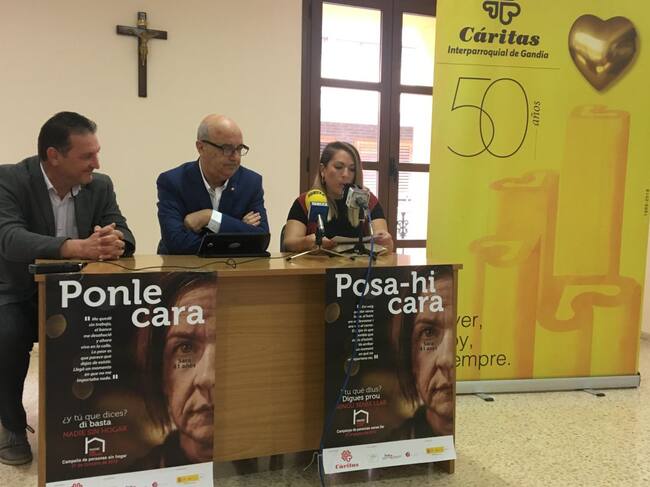 Desde el lunes 21 de octubre y hasta el domingo 27, Cáritas Gandia se suma a la campaña de Cáritas Española "Nadie Sin Hogar", que este año lleva como lema "Ponle cara" e incide especialmente en la prevención. De esta forma, desde Cáritas se reivindica a las administraciones públicas una fuerte inversión en esta materia para poder detectar precozmente situaciones de riesgo; y también coordinación entre las administraciones y aumentar el parque público de viviendas de alquiler social. Todo ello, según ha señalado el director de Cáritas Gandia, Eduardo Mahíques, para"anticiparse a la pérdida del hogar y a las situaciones de calle". A la administración local, aunque le agradece todas las ayudas que otorga a Cáritas, le pide que active protocolos de actuación a la salida de recursos tales como centros penitenciaros, hospitalarios y de menores.
