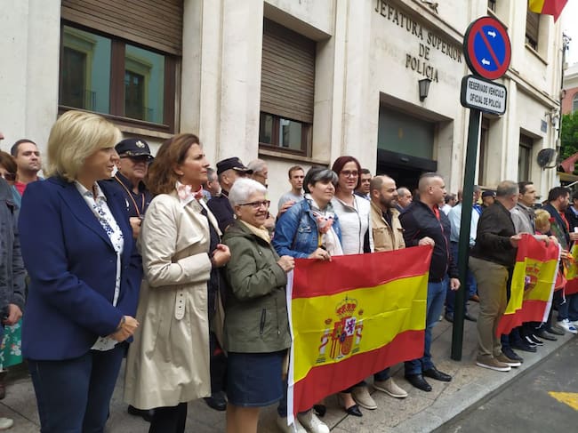 Violante Tomás (PP), Isabel Borrego (PP) e Isabel Franco (C´s) en la concentración de apoyo a la actuación policial en Cataluña / Radio Murcia