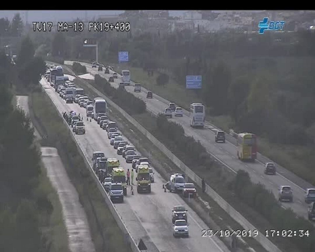 Un accidente con varios vehículos implicados está provocando atascos en la autopista Ma-13 en sentido Inca.