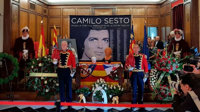 Las cenizas de Camilo Sesto presiden desde las 11 de la mañana de este jueves 24 el salón de plenos del Ayuntamiento de Alcoy. Los restos del Hijo Predilecto y Medalla de Oro de la ciudad, fallecido el pasado 8 de septiembre a los 72 años, han sido recibidos por las autoridades y están custodiados por la Policía Local con el uniforme de gala.