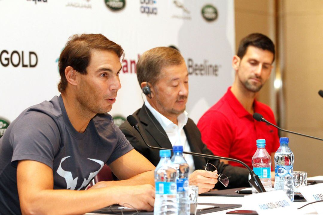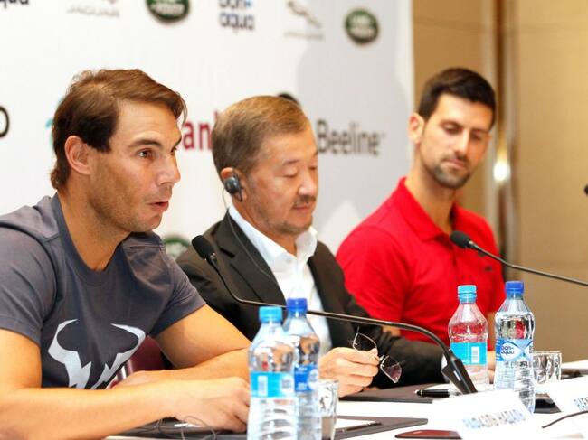 Las actuales dos mejores raquetas del mundo, el español Rafael Nadal y el serbio Novak Djokovic, junto con el presidente de la Federación de Tenis de Kazajistán, Bulat Utemuratov, inauguraron este jueves el nuevo Centro de Tenis de la capital kazaja.