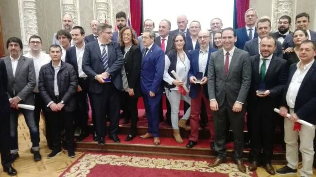 Foto de familia de los premiados por la Cámara Oficial de Comercio, Industria y Servicios de Palencia / Radio Palencia