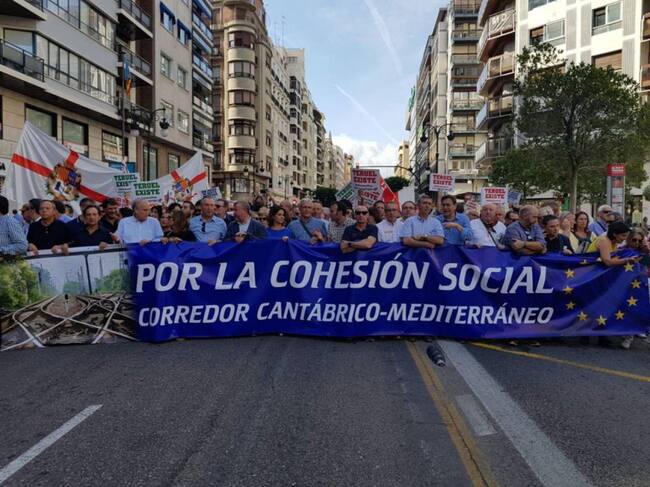 Una de las mayores concentraciones organizadas por CAVE-COVA en defensa del Corredor Cantábrico-Mediterráneo. Foto de archivo / Cadena SER
