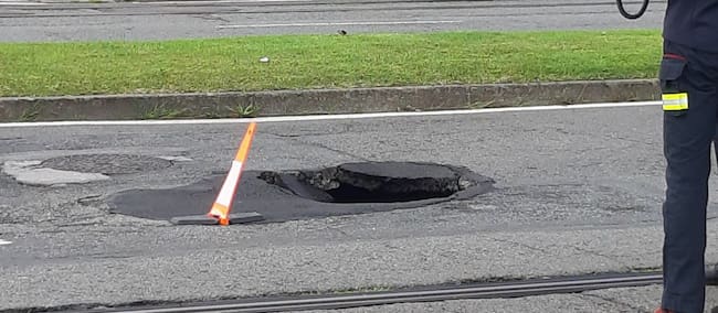 El hundimiento de la calzada obliga a cortar el carril izquierdo