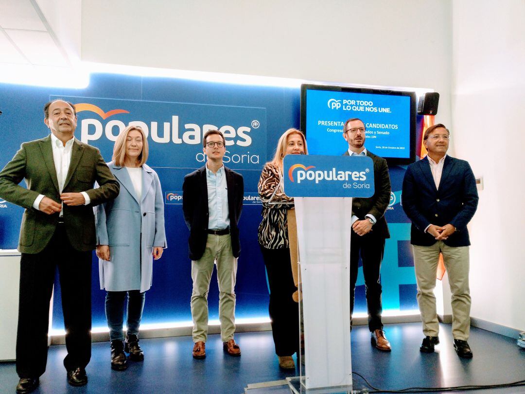 La presentación de los candidatos se ha llevado a cabo en la sede del PP en la calle Almazán de la capital. Estaban los candidatos arropando a Javier Maroto, que no son todos los que quisiera la presidenta del PP de Soria que estuvieran porque fue el 7 de octubre cuando la Dirección Nacional, con llamada del secretario general de los Populares, Teodoro García Egea, decidió que habría cambios. No en el Congreso, porque repite Tomás Cabezón como número uno y María José Martínez como número dos.