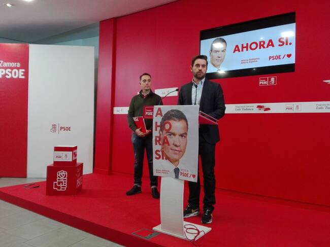 El Secretario Provincial del PSOE, Antidio Fagúndez, y el alcalde de Benavente, Luciano Huerga, ante el consejo de alcaldes socialistas. / CADENA SER