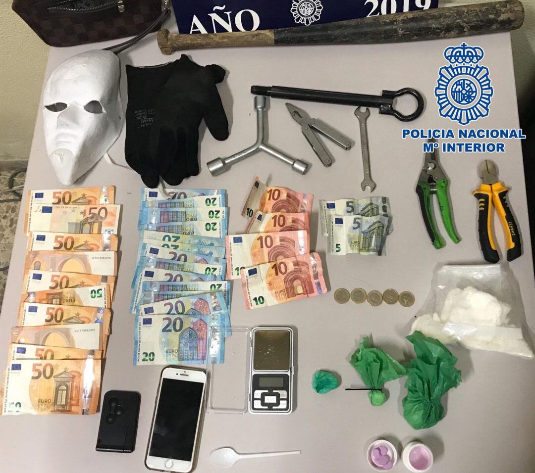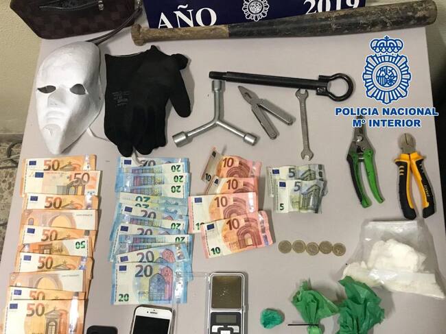 Además, en poder del detenido los agentes hallaron una máscara, guantes y un bate de béisbol de 60 centímetros de longitud, así como otros elementos contundentes.