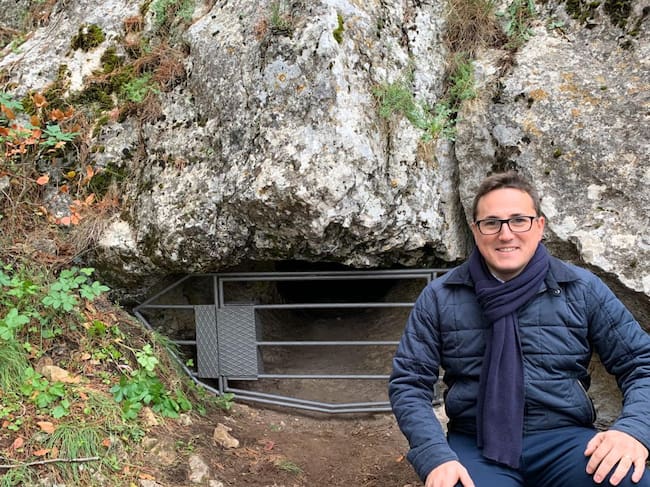 El alcalde de Torres junto a la Cueva del Morrón. / Ayuntamiento de Torres.