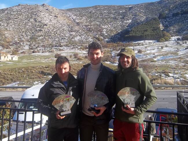 Victor Pérez en el centro con los dos siguientes clasificados en el campeonato de caza menor con perro de Castilla y León / Radio Segovia