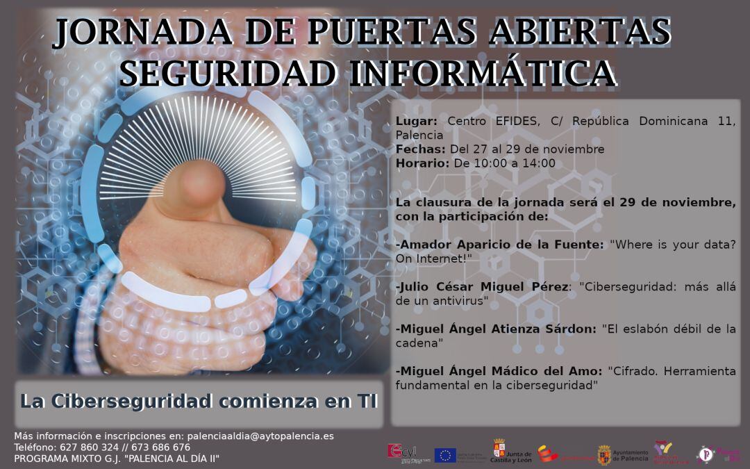• 13:15 -> "Cifrado. Herramienta fundamental en la ciberseguridad", por Miguel Ángel Mádico del Amo (Docente del Programa Mixto de Garantía Juvenil “Palencia al Día II”).