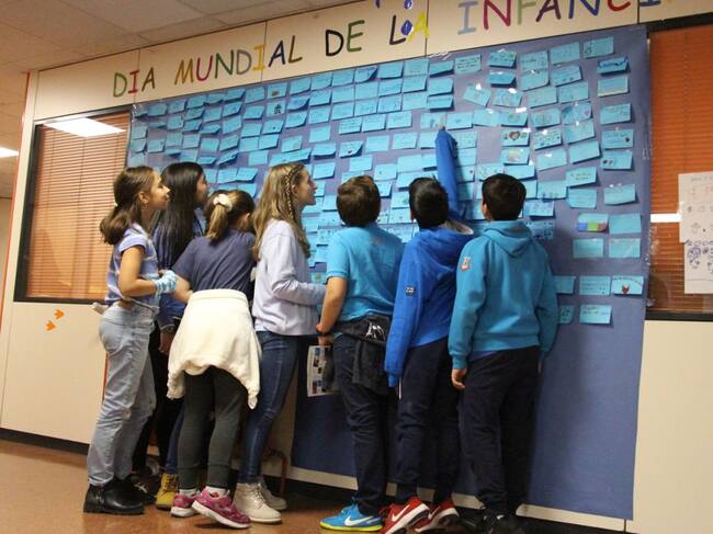 Que totes les nenes i nens del món estiguin escolaritzats, que siguin lliures i que gaudeixin de la seva vida són algunes de les reivindicacions que els infants de l'escola andorrana de maternal i primera ensenyança d'Encamp han posat en relleu aquest dimecres amb motiu del Dia mundial de la infància promogut per Unicef. La jornada, que també coincideix amb el 30è aniversari de la Declaració de la Convenció dels drets dels infants, s'ha basat en enganxar en un mural, col·locat a l'entrada del centre, un 'post-it' on es pot veure una frase, un desig o un dibuix que simbolitza els drets dels més petits i que ells mateixos han escollit.