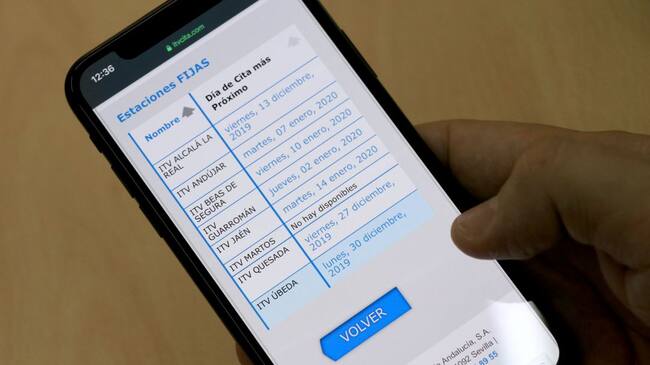 La pantalla de un móvil muestra las fechas que dan las diferentes ITV de la provincia. / PSOE Jaén