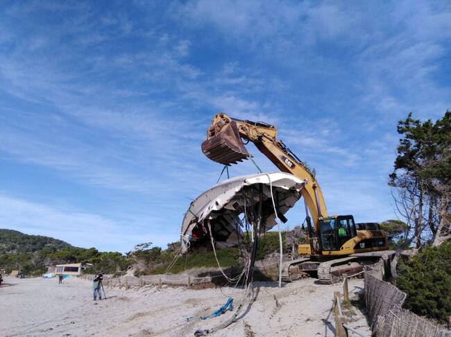 Sant Josep retira el barco varado desde junio en la playa de Migjorn