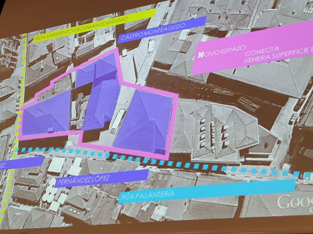 Esta solución permitirá unir de facto los edificios Castro Monteagudo, García Flórez y Fernández López, los tres edificios del siglo XVIII que rodean la plaza de la Leña. El proyecto fue presentado esta mañana en la Diputación por el vicepresidente César Mosquera, el director del Museo Manuel Rey y el arquitecto Jesús Fole, autor del diseño técnico. Los tres coincidieron en señalar que será el proyecto más ambicioso y más complejo realizado Pontevedra.